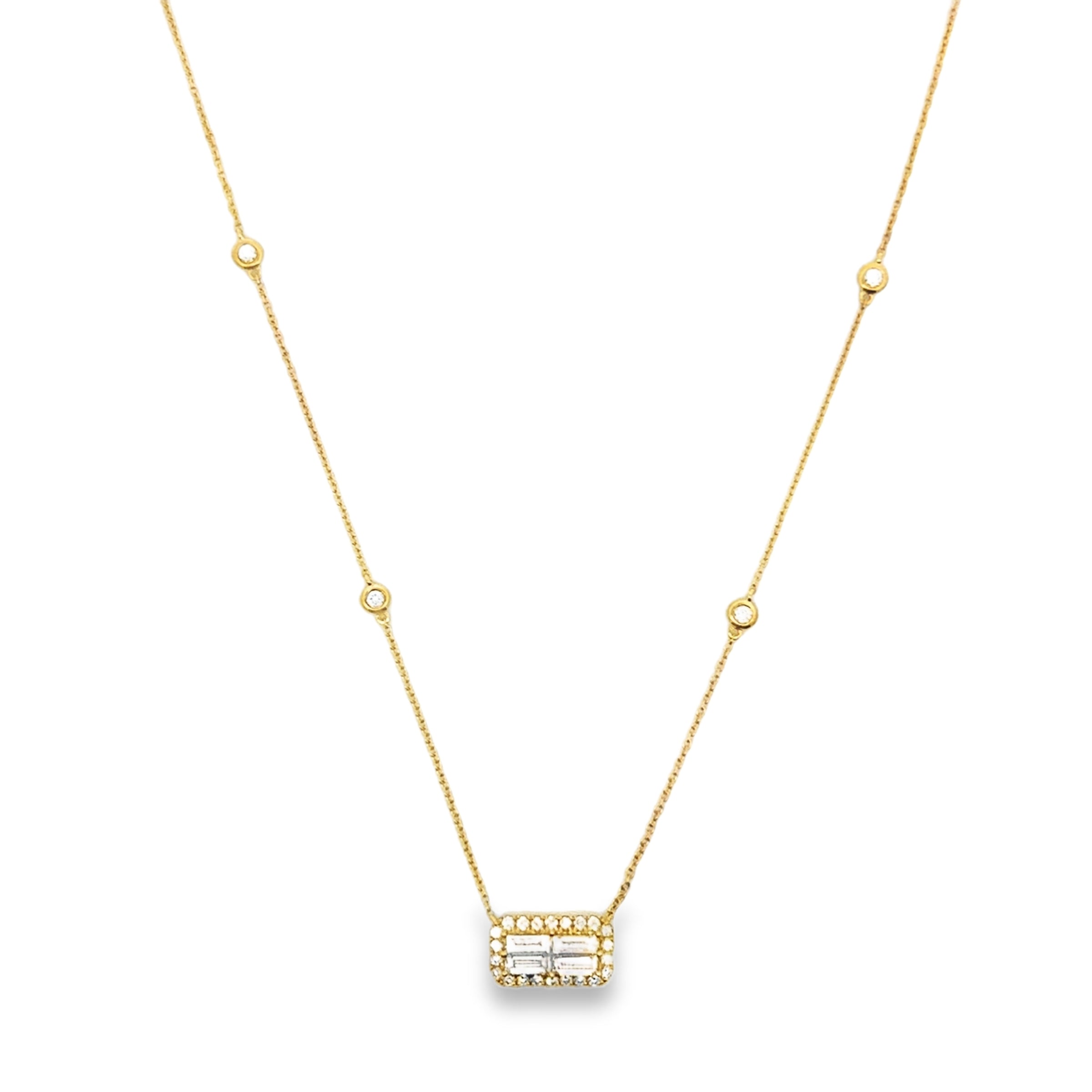 18K YELLOW GOLD EAST TO WEST BAGUETTE HALO NECKLAC