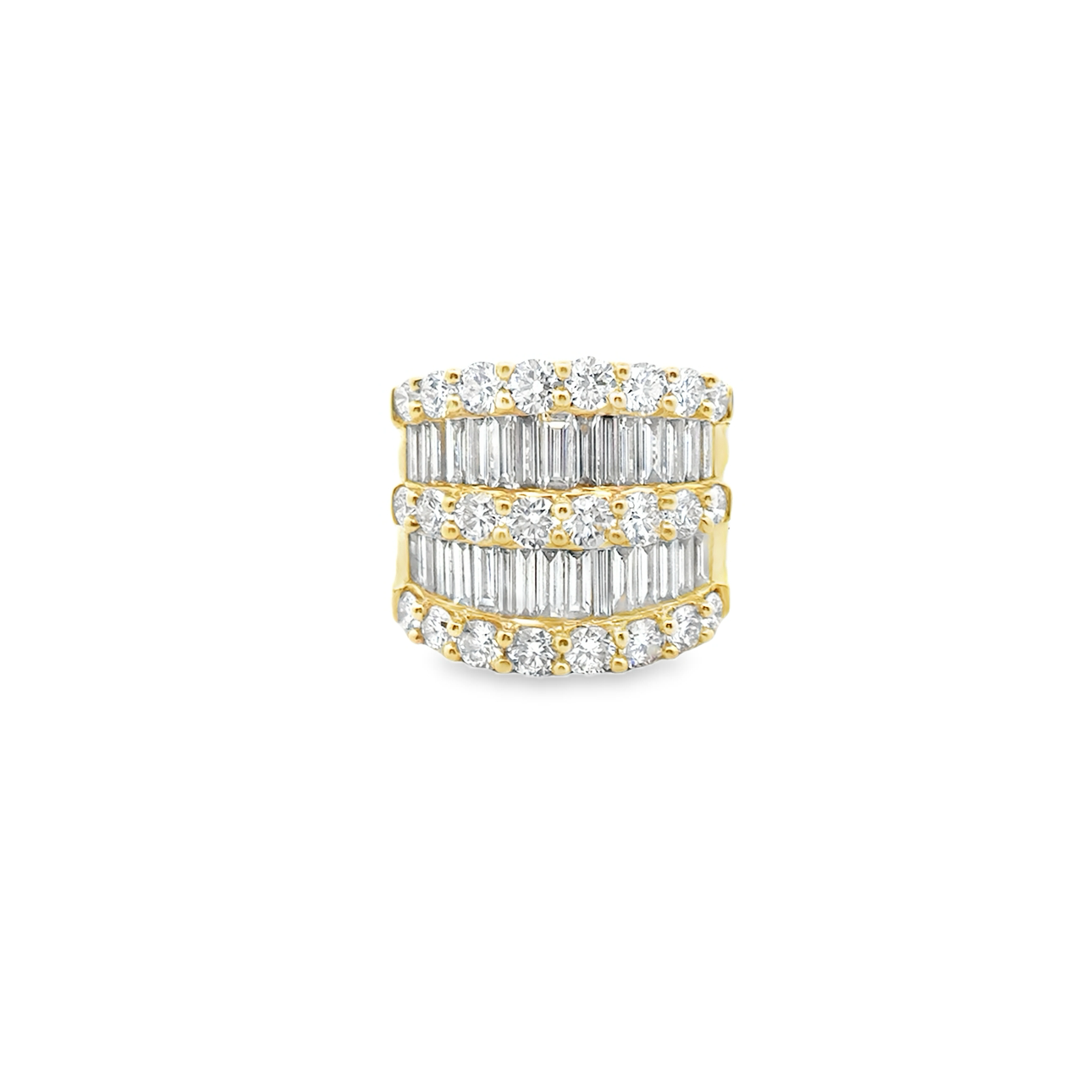 18K YELLOW GOLD WIDE DOUBLE ROW BAND WITH 24 ROUND DIAMONDS =2.44CT AND 30 BAGUETTE DIAMONDS =1.61CT